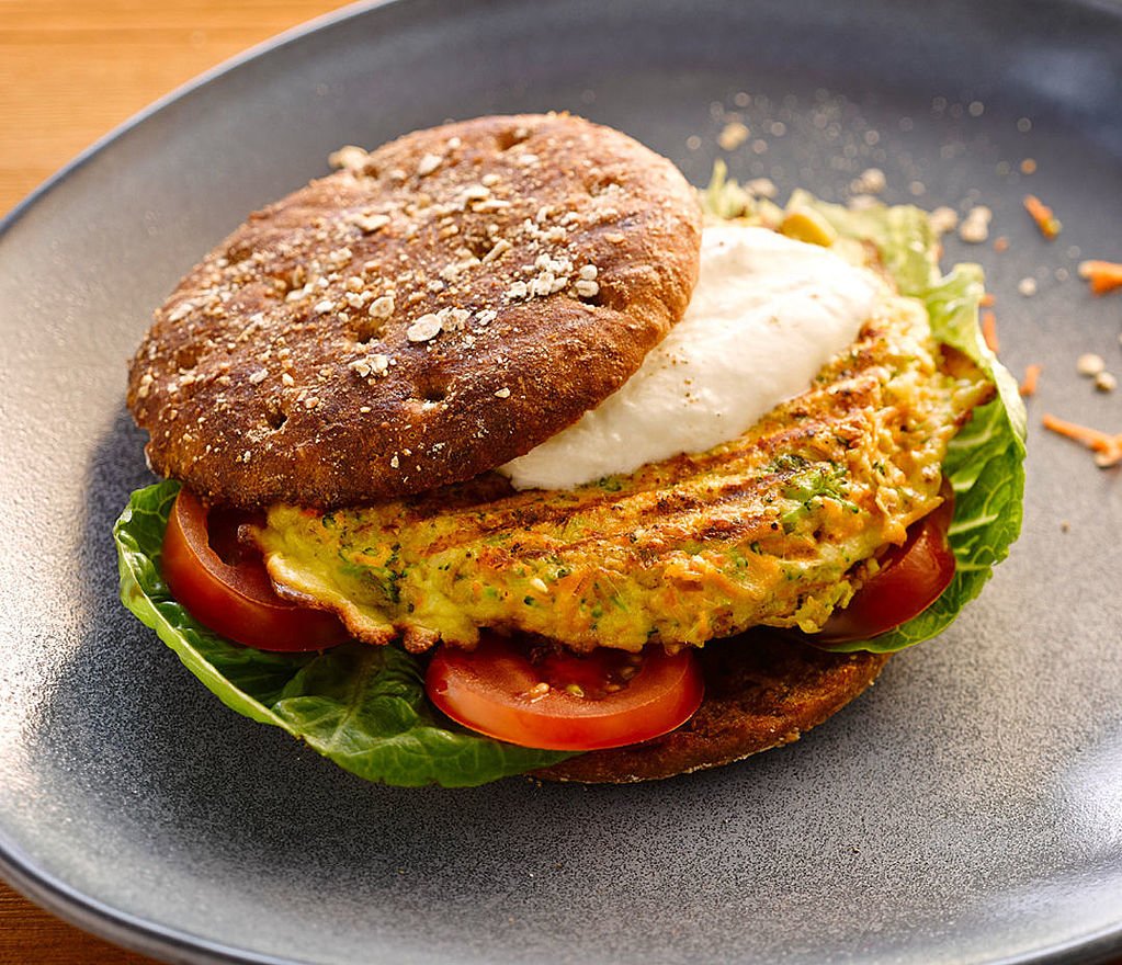 Former un burger veggie avec cette pâte et le faire griller des deux côtés de manière à ce qu’il soit croustillant.